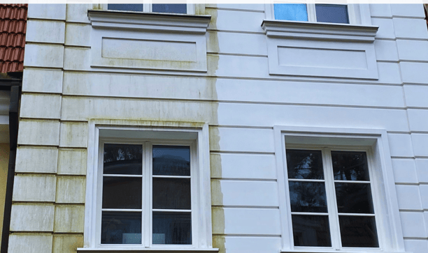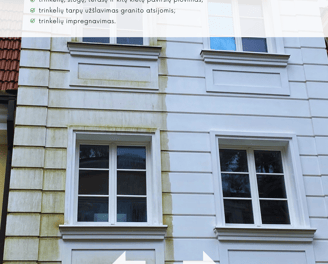 Aukšto slėgio plovimas užtikrina švarų ir estetišką fasadą, pašalindamas nešvarumus, pelėsį ir kitus teršalus, atgaivindamas pastato išvaizdą ir prailgindamas jo tarnavimo laiką.