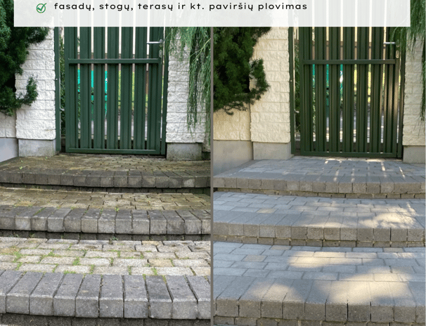Profesionalus aukšto slėgio plovimas įvairiems paviršiams ir objektams.